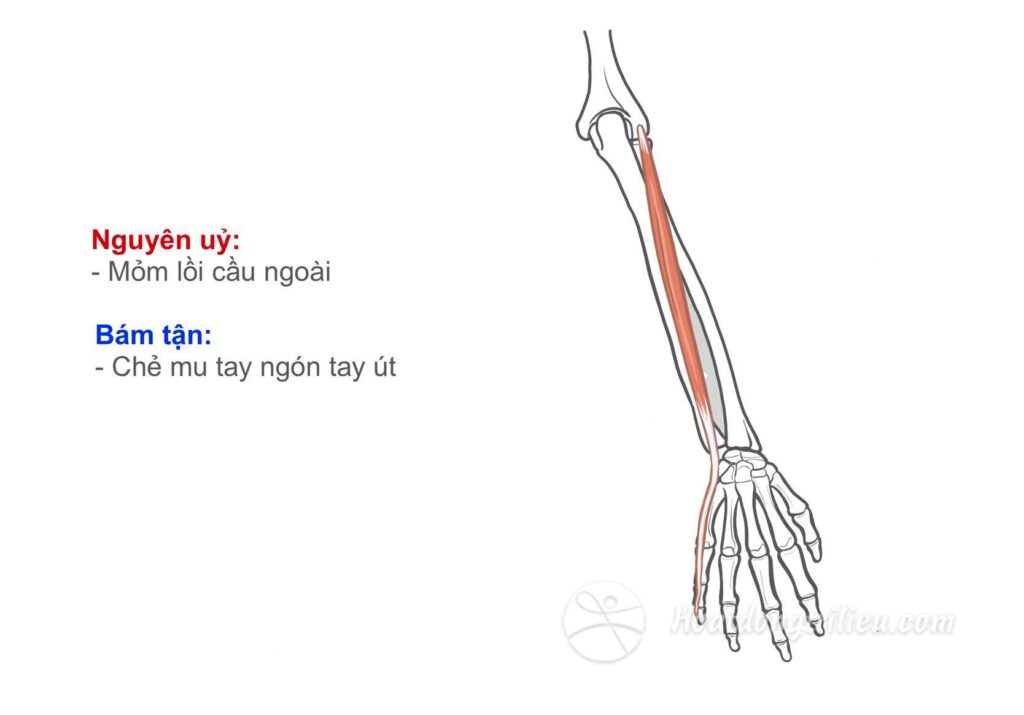 Cơ bám từ mỏm trên lồi cầu ngoài xương cánh tay.
