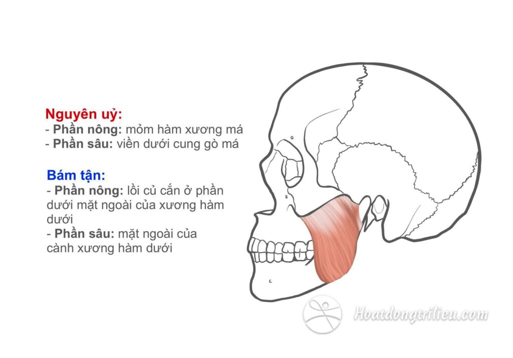 Cơ cắn gồm có hai phần; phần lớp nông và phần lớp sâu.